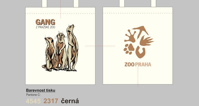 Pro Zoo Praha tiskneme trička, látkové tašky a další textil, který je možné zakoupit přímo při návštěvě zoo, nebo online prostřednictvím e-shopu. Produkty jsou často tematicky zaměřené na zvířata, narozená mláďata či podporu různých projektů Zoo Praha. Realizovány jsou tematické kolekce, například „Rezervace Dja“ nebo „Pomáháme jim přežít“. Grafické zpracování motivů je na vysoké estetické i profesionální úrovni. Potisk je výhradně realizován sítotiskem, u rastrových motivů separací barev v systému Pantone C. Použitím discharge je dosaženo jemného, prodyšného tisku, který zaručuje vysokou trvanlivost potisku i při častém praní.